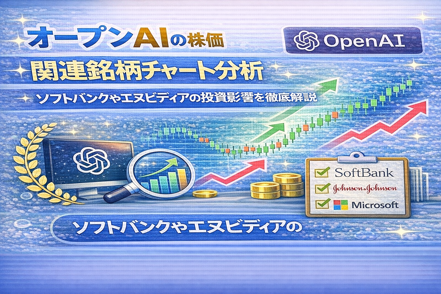 2025年のオープンaiは株式市場に直接上場していないため、株価そのものは存在しません。しかし、世界的なAIブームと関連企業の業績動向が評価額や関連株に大きな影響を与えています。特にソフトバンクグループやマイクロソフト、NVIDIAといった出資企業の株価推移が、オープンaiの市場価値を間接的に反映しています。ここでは、主要な関連株の推移、評価額の変動、投資家心理に影響を与えた歴史的要因を整理します。最新データをもとに、今後の投資判断に役立つ情報を詳しく解説します。