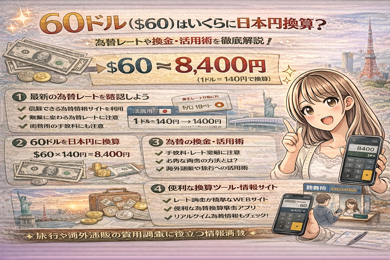 「正確な金額が知りたい」「手数料で損をしたくない」と思っている方は、ぜひ最後までご覧ください。あなたの疑問や不安をしっかり解消し、安心して500ドルを日本円に換算できる知識が手に入ります。