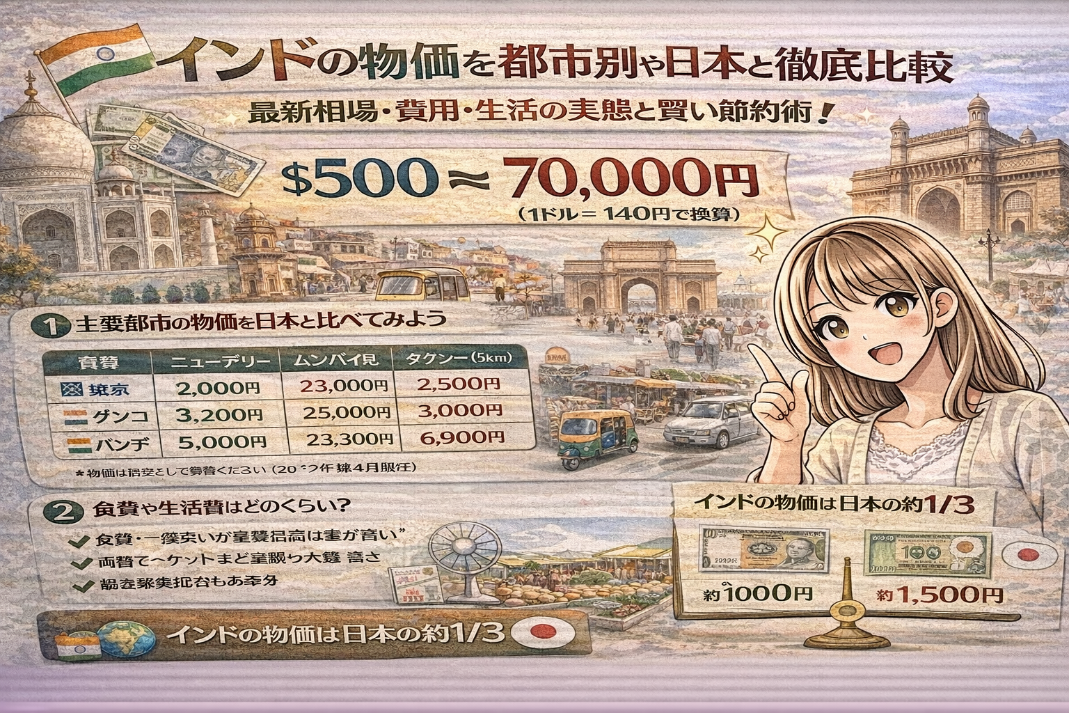 このページでは、インド主要都市の物価比較や生活費の実態、過去から現在までの物価推移など、最新データをもとに徹底解説します。最後まで読むことで、あなたが抱える「インドの物価」への疑問や不安をきっと解消できるはずです。